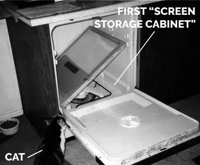 While frequenting his favorite restaurant, Veggie Fun, Dan developed an interest in the empty spot next to it, once occupied by a magic store (a store that sold magician’s supplies, not a magical store) and he thought, “how great would it be to walk right next door to get my favorite food!? And what a wise thing to base a critical business decision on!!” After finding that the rent was a bit higher than he could afford along with new housing rent, Dan decided to live and work in the shop to avoid paying two rents. He converted an old shower stall into a washout booth for the screens, and he could also use that to shower himself.