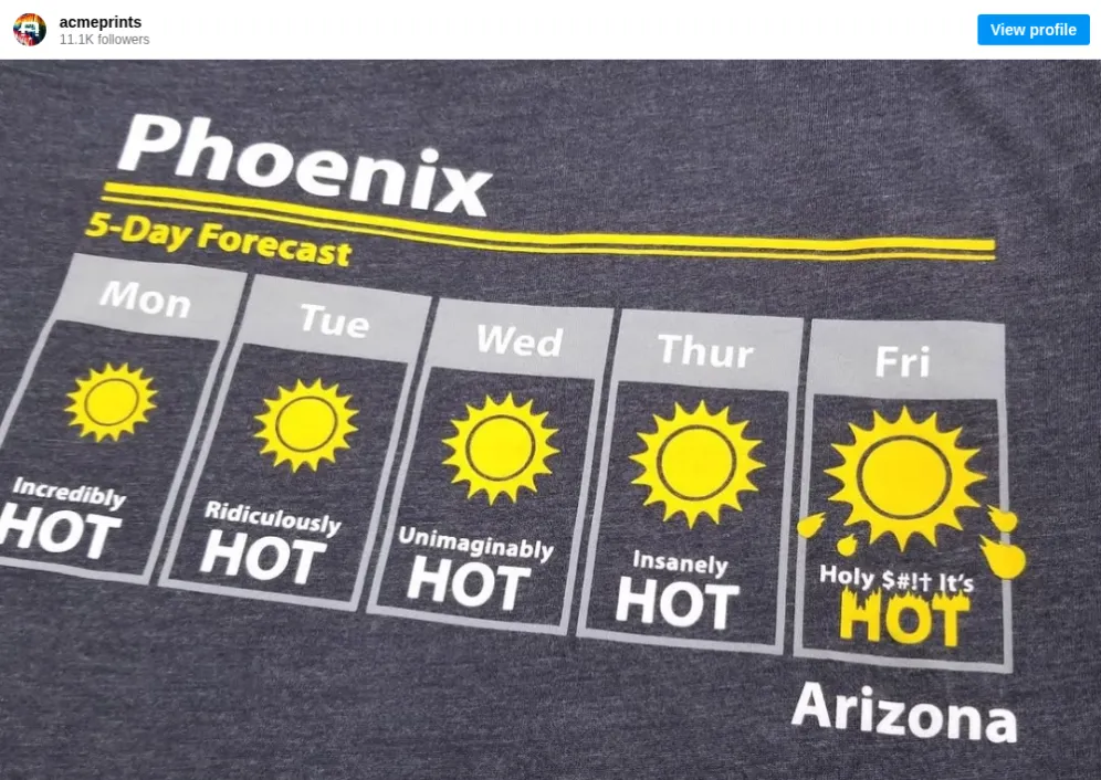 Accurate forecast until October. . . . . #weather #hot #summer #acmeprints #design #designer #tshirt #printing #phoenix #ridiculouslyhot #sunshine