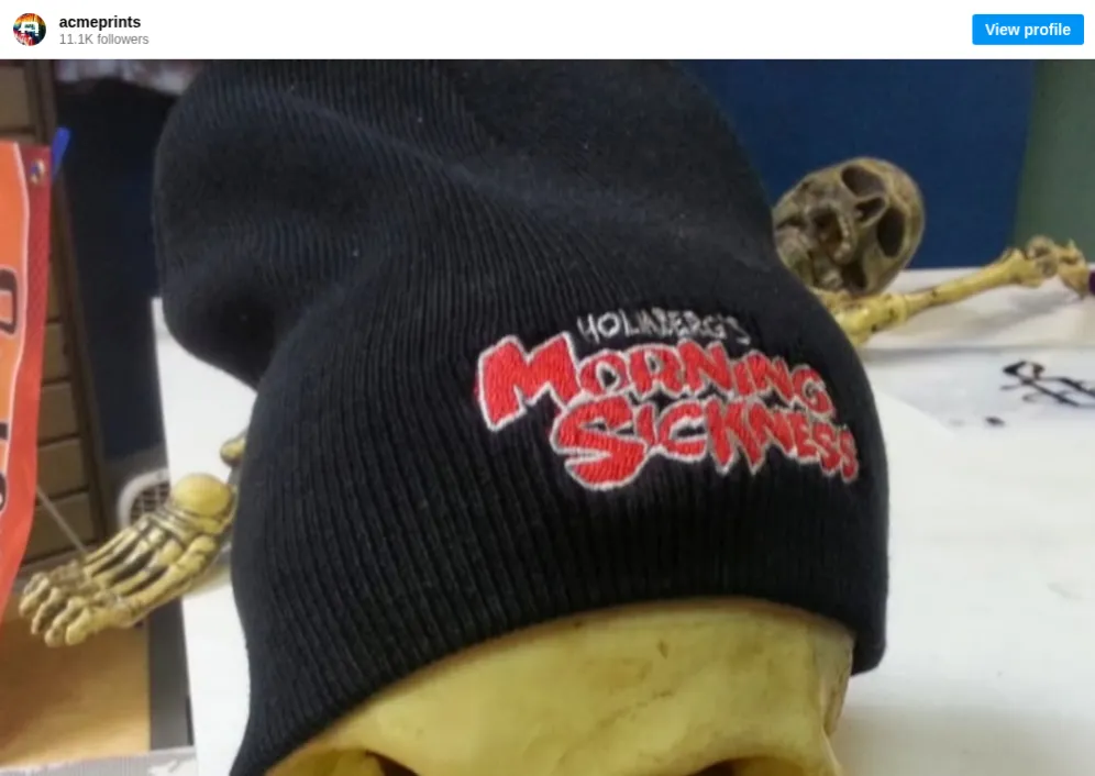 Beanie season better get here soon or we will look like this wearing them! We can also embroider or make patches for your own beanies. Show off your company or band logo! Click the bio link and check it. . . . . . . #acmeprints #printing #shopping #retail #beanie #hats #custom #local #phoenix #localbusiness #dtphx #az #supportlocal #shoplocal #summer #falliscoming #morningsickness #holmberg #kupd