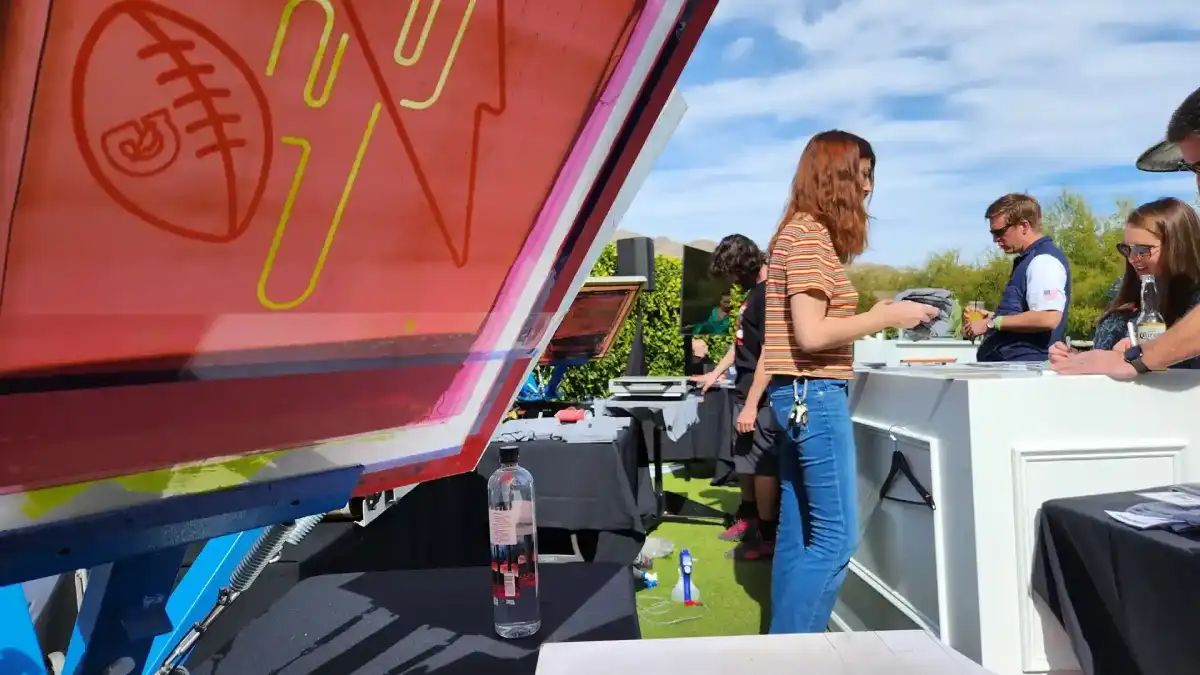 Screen printing is our most popular event - guests love to watch shirts get made, and the result is a long-lasting high quality print. Perfect for events, parties, and promotions, we print vibrant, custom designs on-site for an engaging and memorable experience.